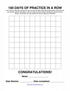 4. Pondremos la plantilla en un lugar bien visible y a mano (en la puerta del frigorífico, en la pared de la habitación, en el corcho del sitio donde practicamos,…) de esta manera, no olvidaremos tachar/colorear/“pegatinear” cada día que practiquemos.