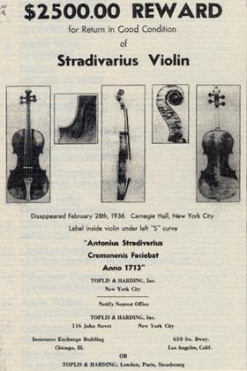Bueno, el violín que nos ocupa, el Stradivarius Gibson, fue construido en Cremona (Italia) en 1713, como ya hemos dicho, y en el pasado perteneció a violinistas célebres como George Alfred Gibson (de quien tomó el nombre) y el virtuoso polaco Bronislaw Huberman. Fue precisamente este último quien, un triste 28 de febrero de 1936, sufrió un doloroso robo: alguien entró en su camerino en el Carnegie Hall de Nueva York y se llevó el Stradivarius. Huberman estaba en ese momento en el escenario (actuando con otro violín, naturalmente). Cuando dió parte del robo, no hubo nada que hacer. El músico falleció en 1947 sin haber podido recuperar su violín.
